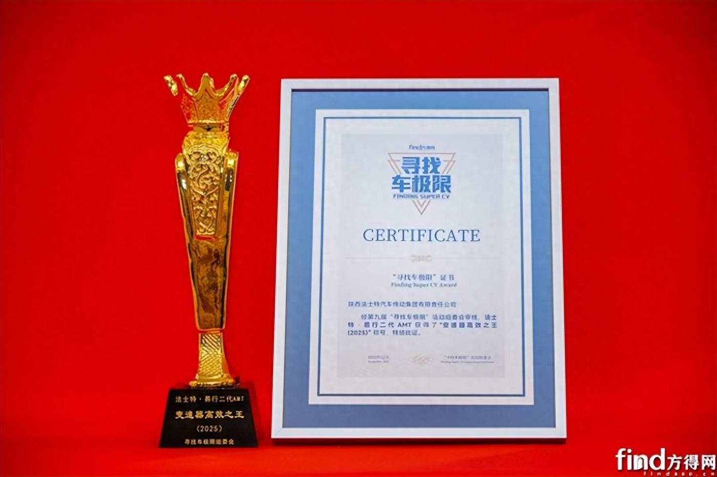 凭借领先设计技术、市场优异表现和良好用户口碑,法士特·易行二代AMT荣获2025年车极限活动“变速器高效之王”称号。